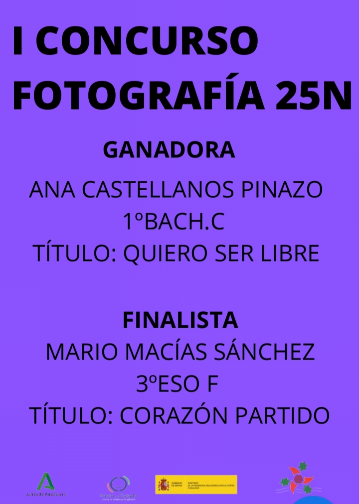 Resolución: A continuación, adjuntamos el cartel y las fotos del alumnado ganador y finalista de la primera edición del Concurso de fotografía 25-N. Enhorabuena!! Para más informaciónsobre los preparativos para conmemorar el 25 -N, siempre os remitimos a nuestro blog de Igualdad. Pinchar aquí Buscador Buscar: Categorías Blog Departamento de Servicios Planes y proyectos [...]