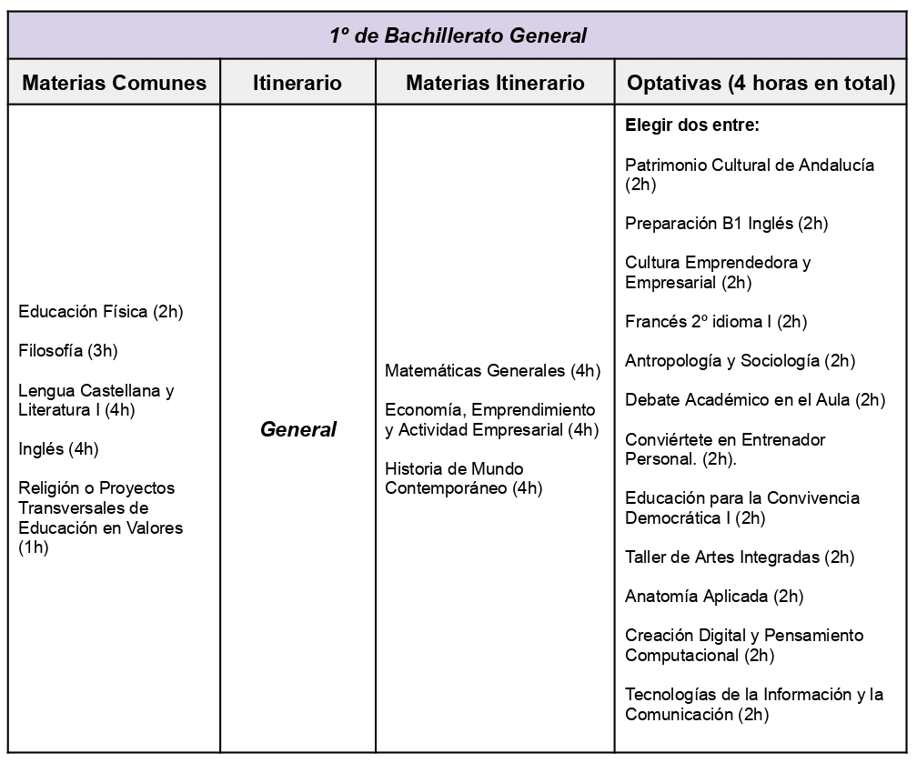 La etapa de Bachillerato tiene como finalidad promover la formación, la madurez intelectual y humana, los conocimientos y las destrezas que permitan al alumnado progresar en su desarrollo personal y social. Igualmente, favorecerá la adquisición y el logro de las competencias indispensables para su futuro formativo y laboral, capacitándole para el acceso a una educación superior. Para conseguir esta finalidad se prestará especial atención a la orientación educativa y profesional, al desarrollo integrador, coherente y actualizado de los saberes básicos para profundizar en las competencias que le permitan afrontar con éxito el aprendizaje permanente a lo largo de la vida. Asimismo, se atenderá a la compensación de los efectos que las desigualdades de origen cultural, social y económico tienen en el aprendizaje. Todo ello, con el objetivo de alcanzar el éxito educativo y la búsqueda de la excelencia que lo capaciten para desarrollar al completo sus aptitudes y potencialidades.
