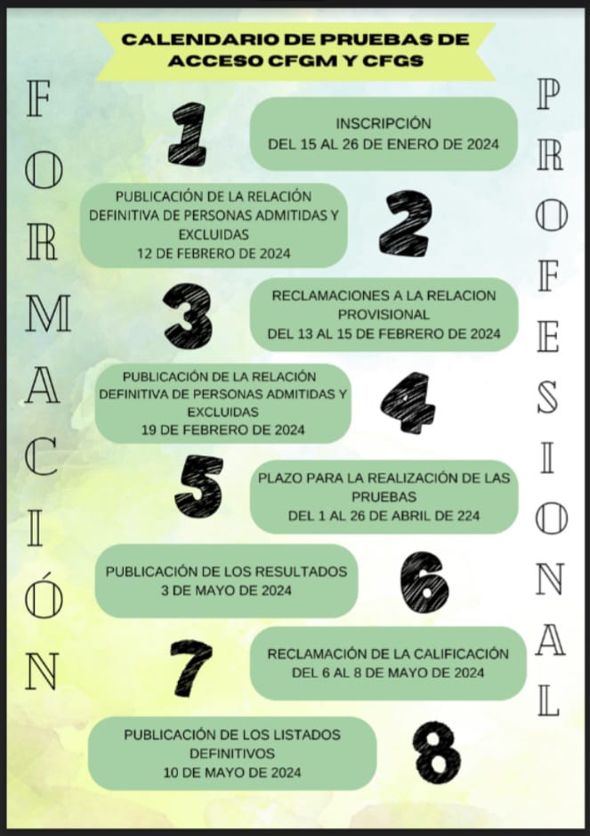 CALENDARIO PRUEBAS DE ACCESO CFGM Y CFGS DURANTE EL AÑO 2024