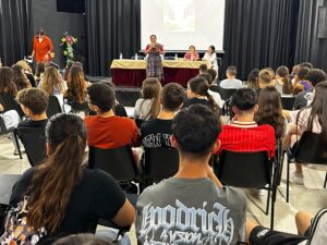 Durante el encuentro, Cristina expuso sus vivencias y el camino recorrido hasta convertirse en lideresa y ejemplo para otras mujeres de su comunidad. Seguidamente, el alumnado le realizó preguntas cuyas respuestas invitaron a la reflexión.