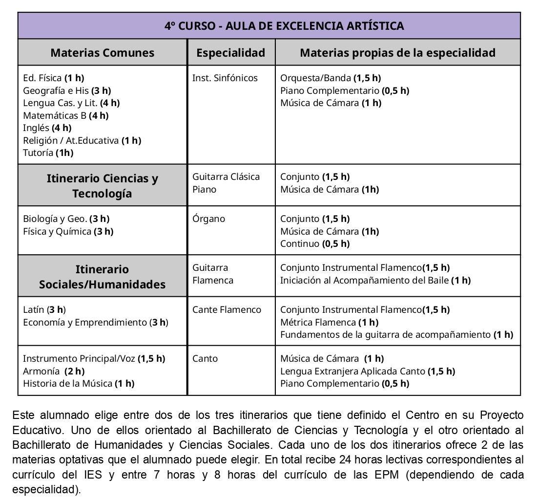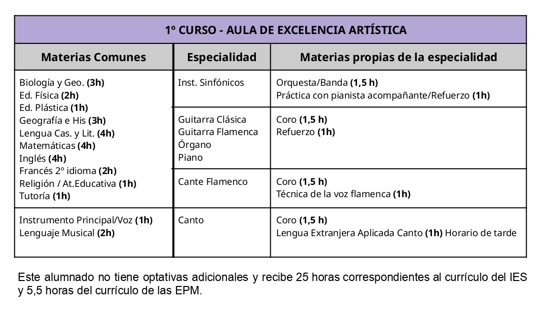 El Aula de Excelencia Artística (AEA) es un proyecto conjunto aprobado en el curso 2021/22 para nuestro Centro y para el Conservatorio Profesional de Música Manuel Carra. Este proyecto tiene como objetivo la compatibilización de las Enseñanzas Profesionales de Música (de 1º a 4º) con la Educación Secundaria Obligatoria (ESO), permitiendo que el alumnado de esta Unidad Integrada tenga en su horario lectivo de mañana, todas las asignaturas de la ESO y todas de las horas del Conservatorio, disponiendo por tanto de las tardes libres.