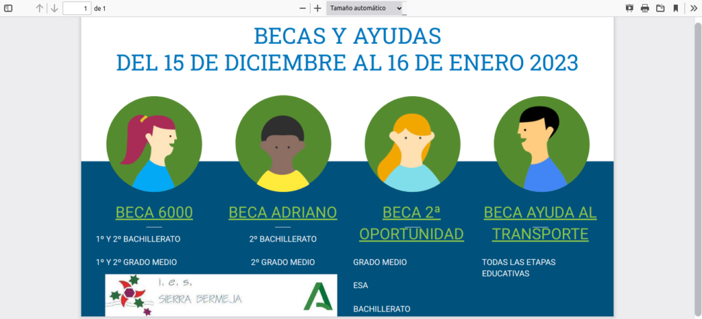 BECAS Y AYUDAS DEL 15/12/22 AL 16/01/23 BECA 6000: 1º y 2º Bachillerato, y 1º y 2º de Grado Medio. BECA ADRIANO: 2º Bachillerato y 2º de Grado Medio. BECA 2ª OPORTUNIDAD: Grado Medio, ESA y Bachillerato. BECA AYUDA AL TRANSPORTE: Todas las Etapas Educativas. Toda la Información en este enlace:BECAS Buscador Buscar: Categorías Blog [...]